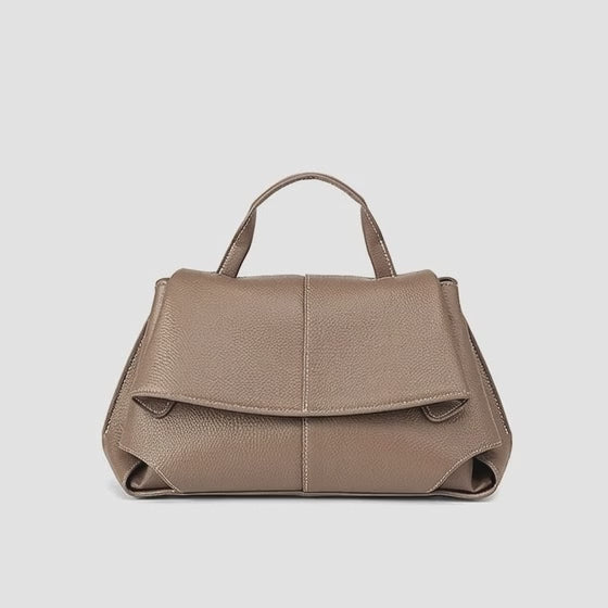 A softly structured satchel designed to balance everyday practicality with a refined silhouette. Crafted from genuine leather, it features a sculpted flap and fluid shape that sits comfortably against the body while maintaining a polished look. The magnetic flap with internal zip keeps essentials secure, and the organised interior makes daily carry effortless. With top handle, shoulder, and crossbody options, it transitions easily from workdays to evenings without feeling overdone.